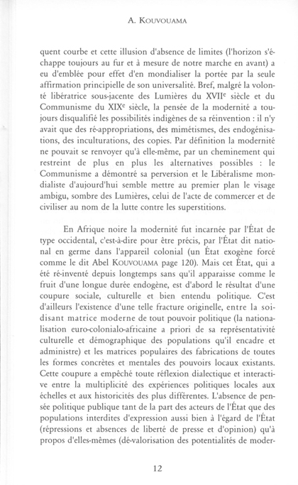 Modernité africaine. Les figures du politique et du religieux de Abel Kouvouama
